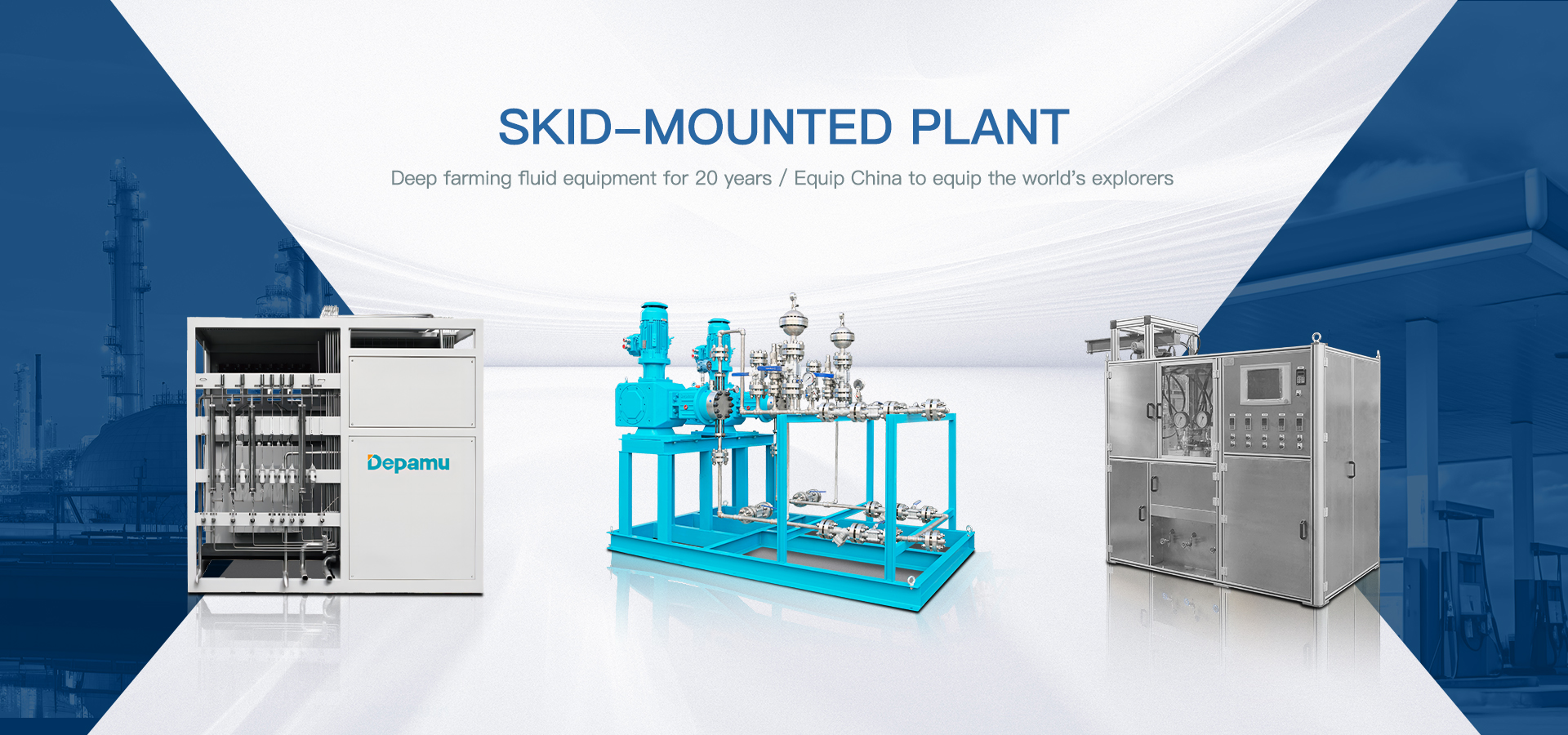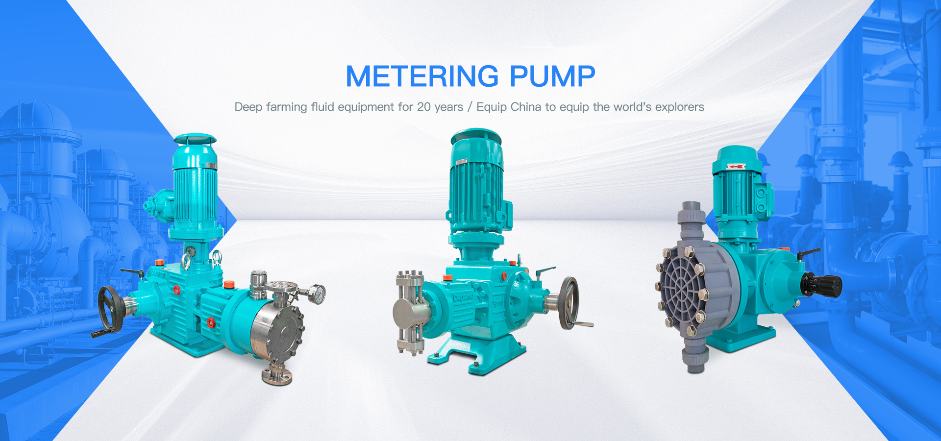 Depamu (Hangzhou) Pumps Technology Co., Ltd., located in Hangzhou Qiantang District, is a high-tech enterprise specialized in R & D, production and sales of main products including metering pumps, high-pressure process reciprocating pumps (plunger/diaphragm/hose), electric diaphragm pumps, pneumatic diaphragm pumps, screw pumps (one/two/three-screw), lobe pumps (rubber/metal), centrifugal pumps, chemical dosing packages, water-steam sampling equipment, supercritical fluid equipment and water treatment equipment, etc.