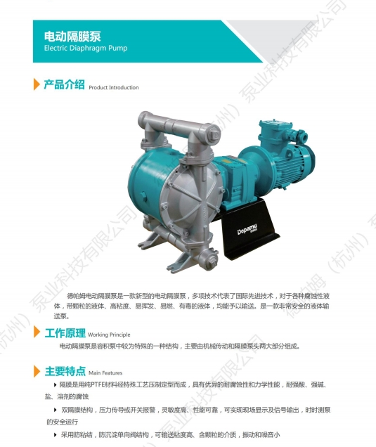 德帕姆電動隔膜泵是一款新型的電動隔膜泵,多項技術(shù)代表了國際先進水平,對于各種腐蝕性液體,帶顆粒的液體、高粘度、易揮發(fā)、易燃、有毒的液體,均能予以輸送,是一款非常安全的液體輸送泵。